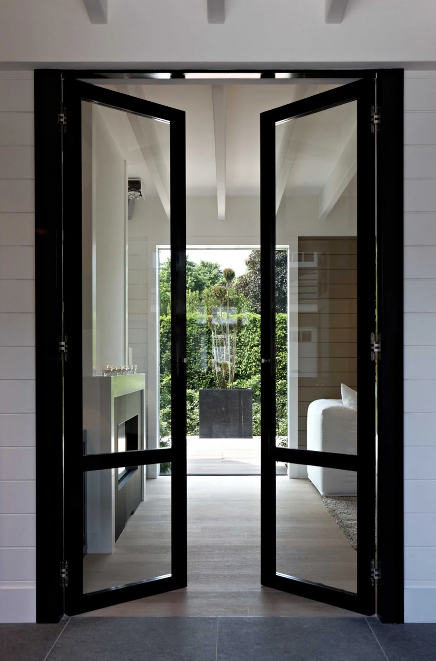 Входные и тамбурные двери выполняют, как правило, из теплого алюминиевого профиля, межкомнатные – из холодного. Входные двери могут иметь полностью прозрачное заполнение – стекла триплекс и стеклопакеты с противоударными свойствами. Фурнитура, доводчики, ручки подбираются в соответствии с назначением двери и условиями эксплуатации.