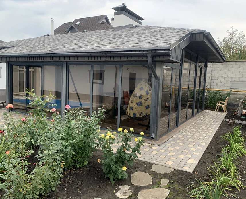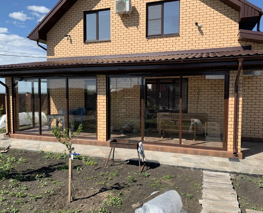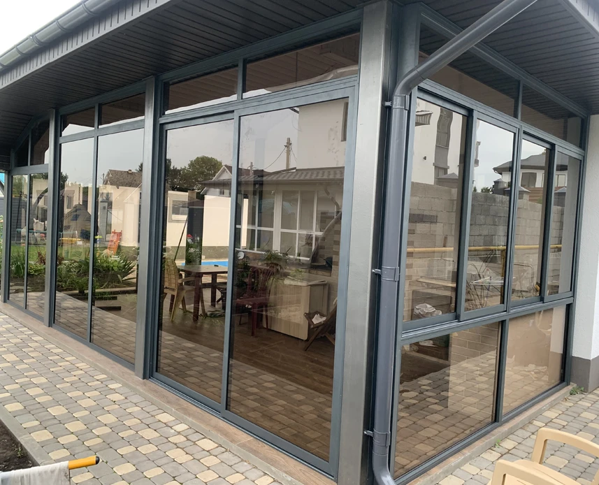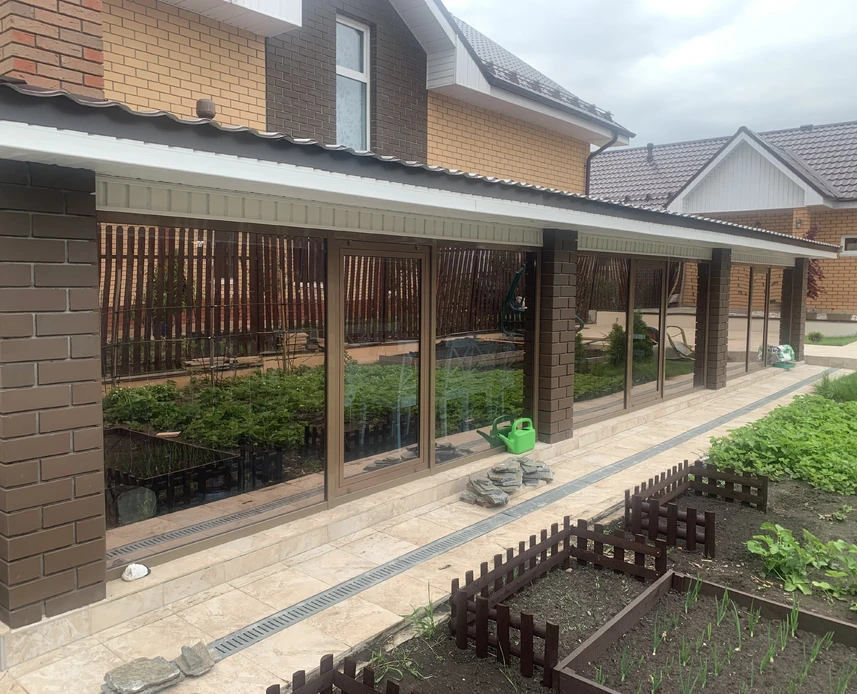 При остеклении террас, веранд и беседок используется высококачественный алюминиевый профиль с надежной и долговечной фурнитурой. Разнообразные варианты открывания позволяют расширить пространство для наслаждения природой и свежим воздухом.